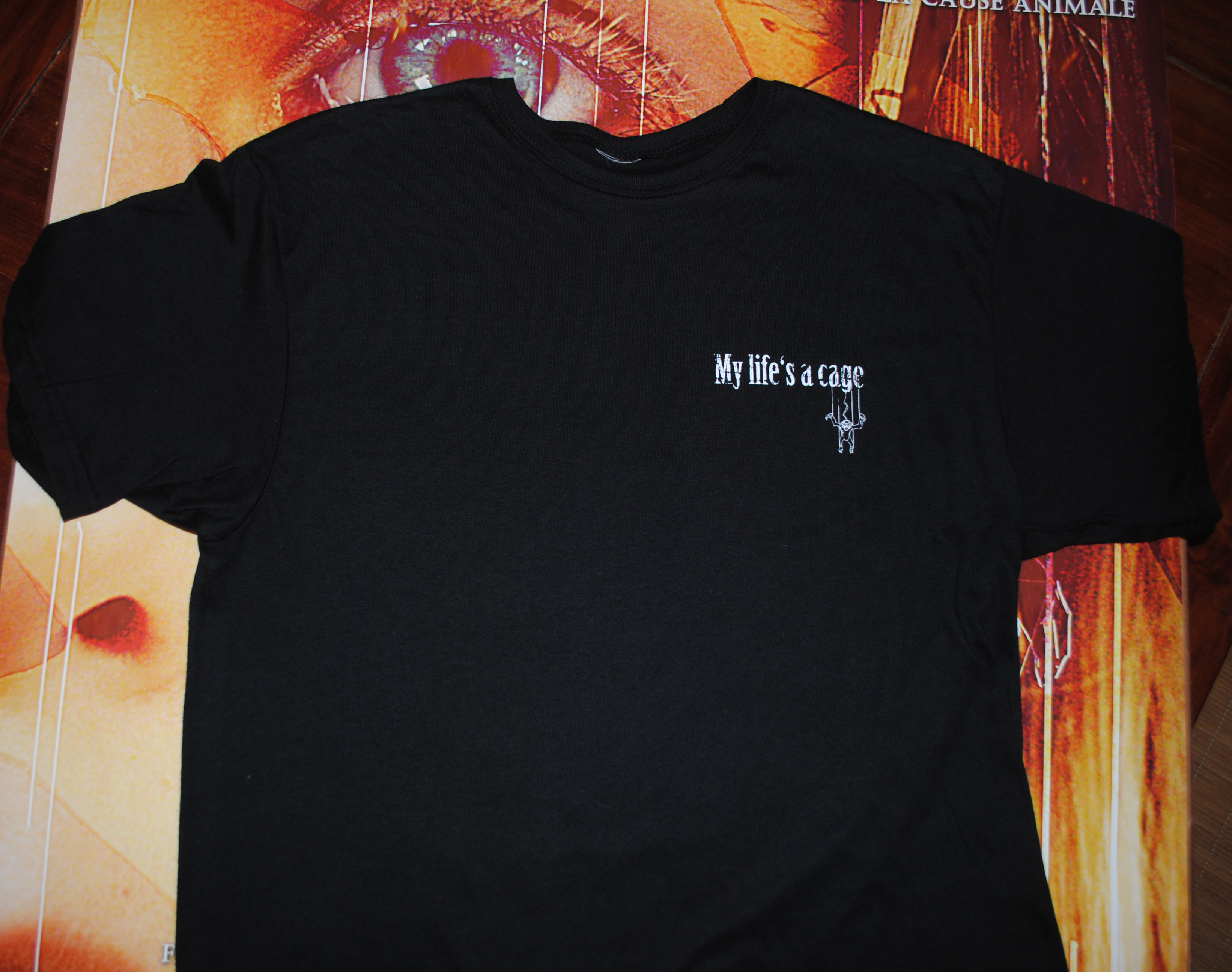 + Impressions couleurs dans le dos « My life’s a cage + les animaux
